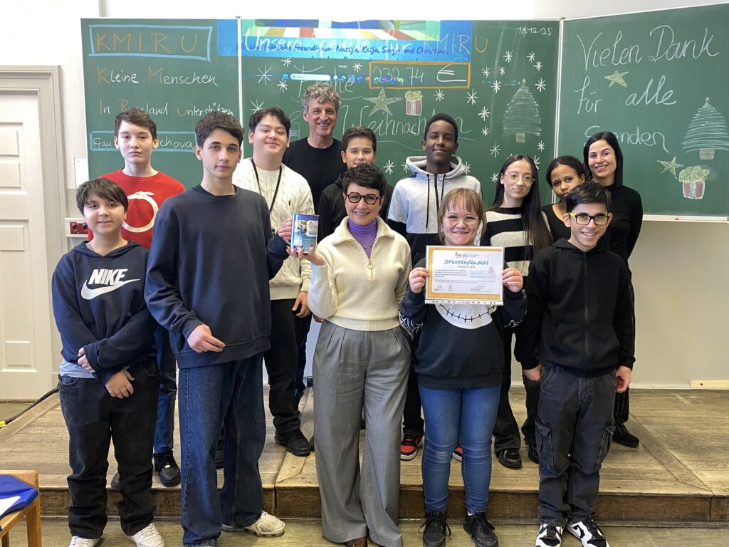 Wir führen die Tradition fort und haben in der Vor-Weihnachts-Zeit wieder Geld für den Verein Kmiru gesammelt (KMIRU bedeutet Kleine Menschen in Russland unterstützen) gesammelt.