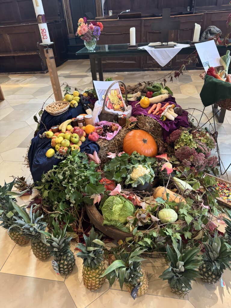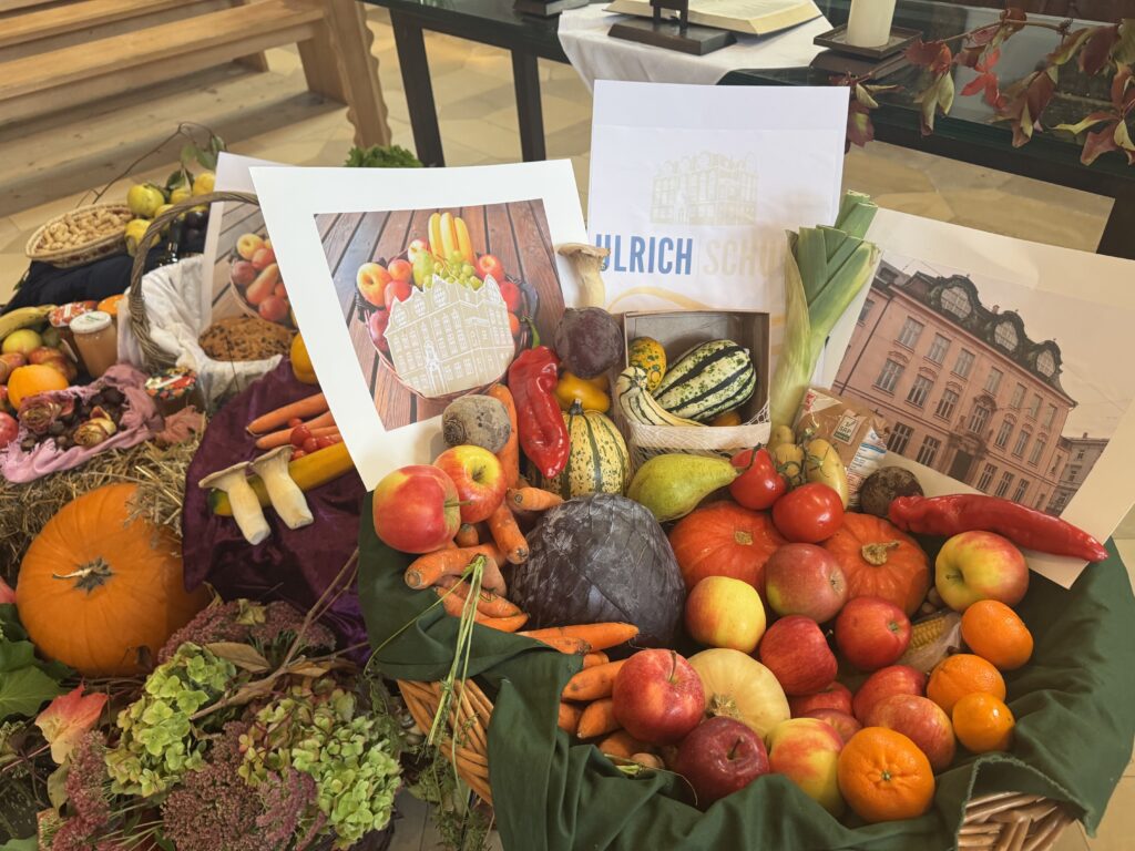 Unser Erntealtar war reich gedeckt und wir haben DANKE gesagt für das leckere Obst, für unsere Familien und natürlich für unsere Ulrichschule.